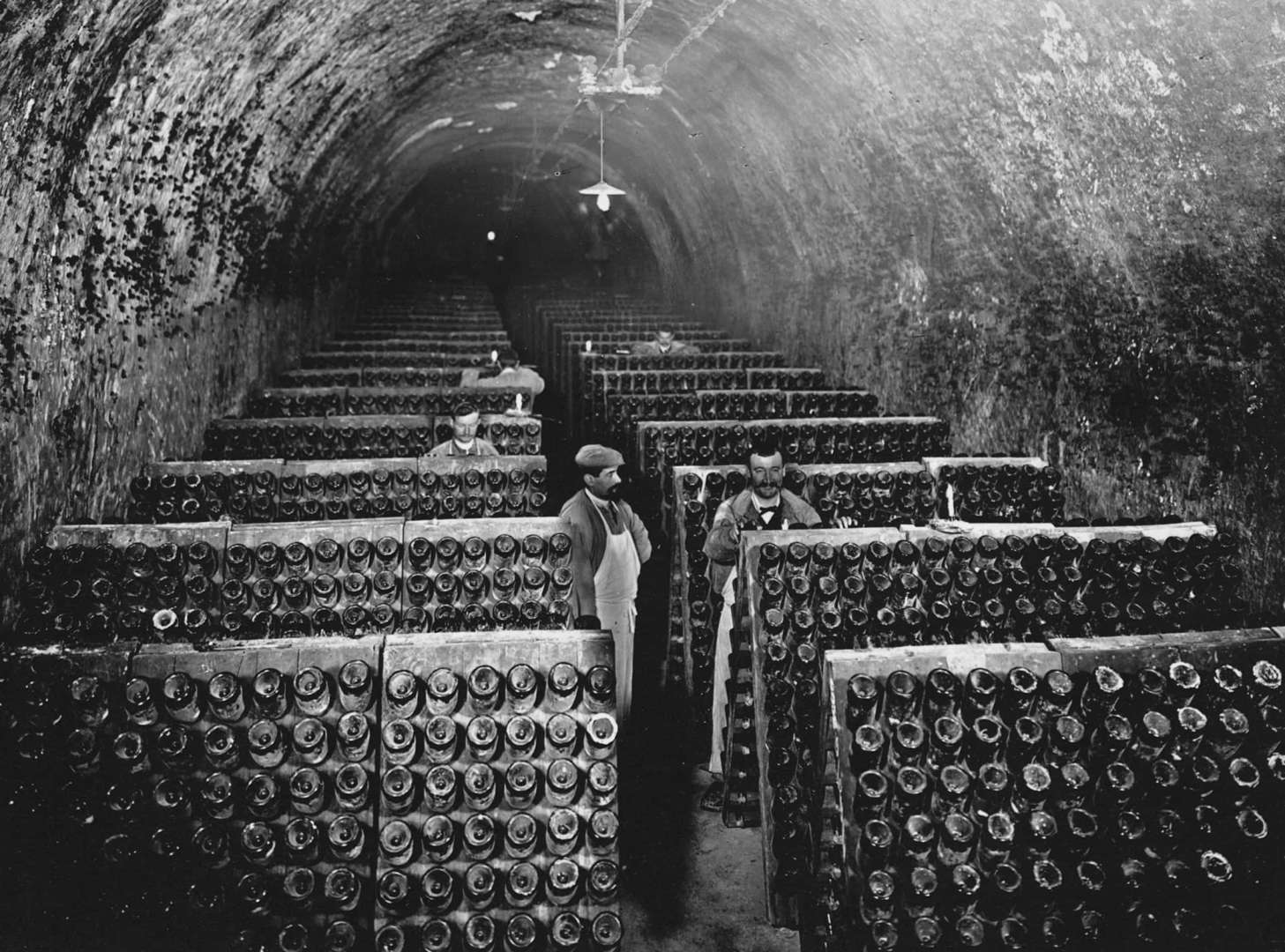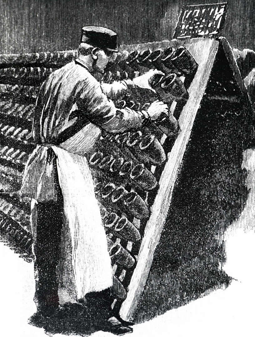약간 회전시키면서 샴페인 병을 비스듬히 보관하는 방법을 고안했다.