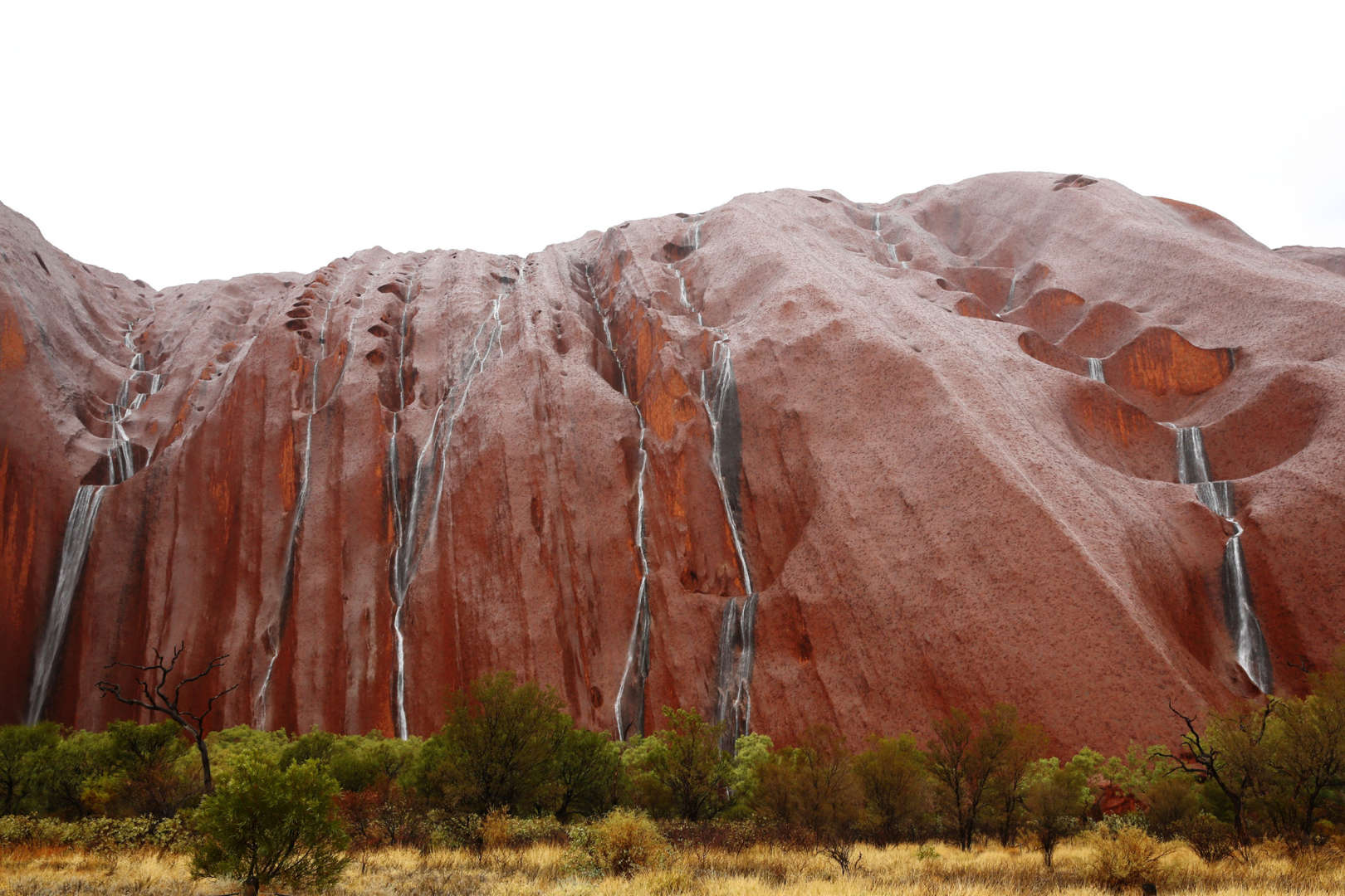 이 거대한 붉은 바위는 호주 오지의 평평한