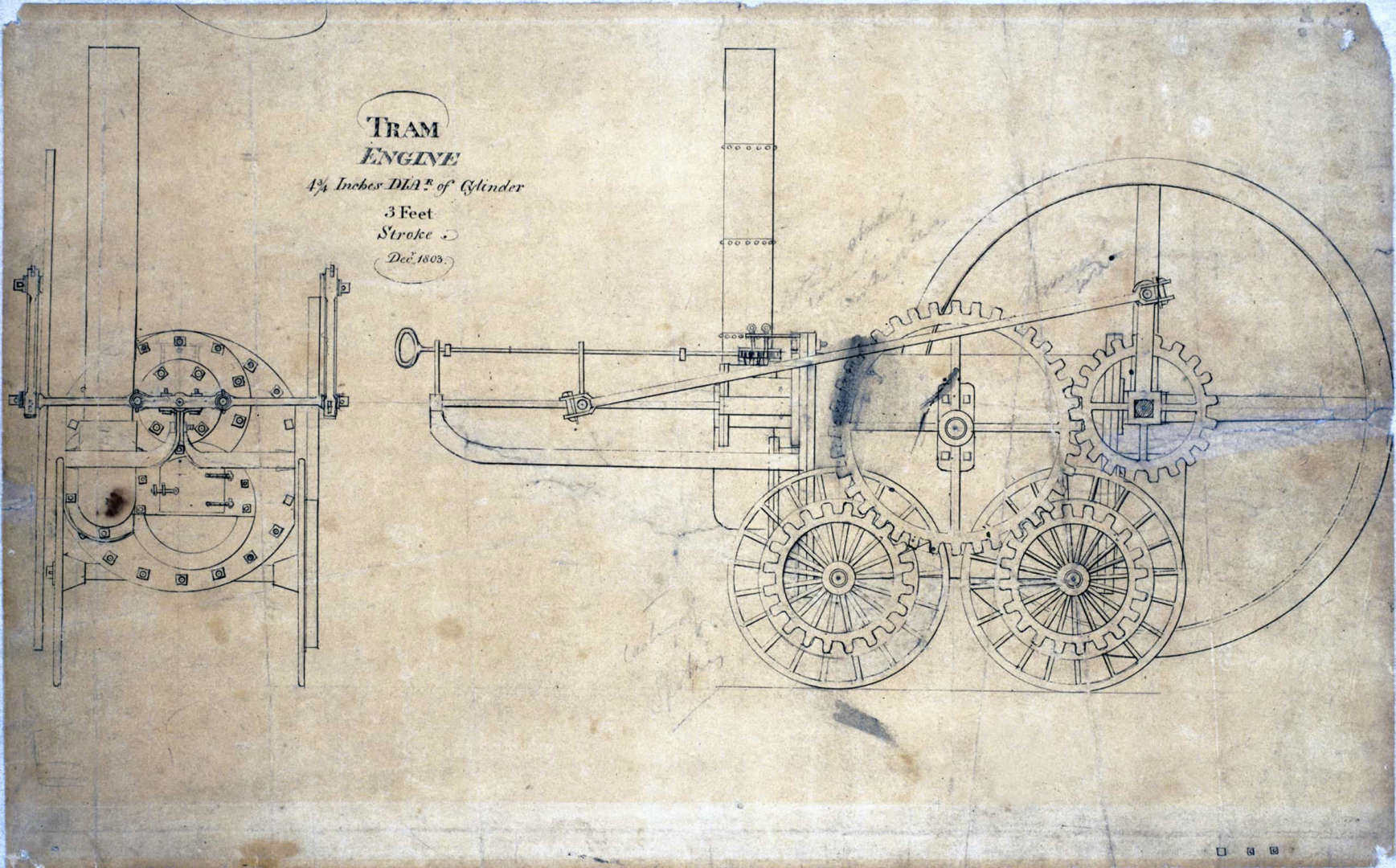 1804년 2월 21일 웨일즈의 철도에서 최초의 증기 기관차를 선보였다.