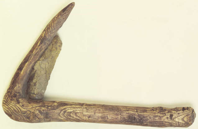 사진은 곡물을 수확하는 데 사용된 선사시대의 낫이다.