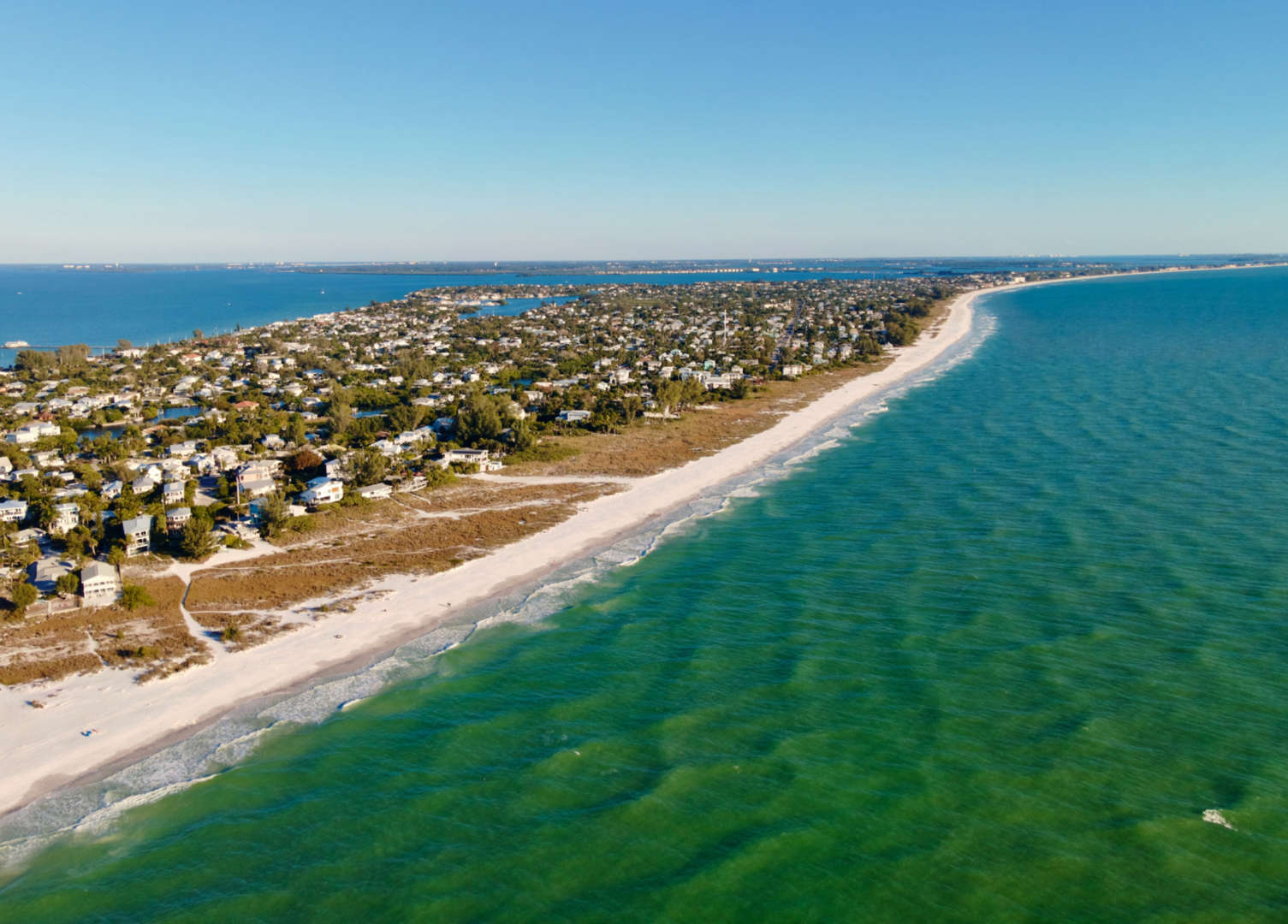 세인트 피터스버그 건너편에 있는 탬파베이의 남쪽에는 안나 마리아 섬이 있다.