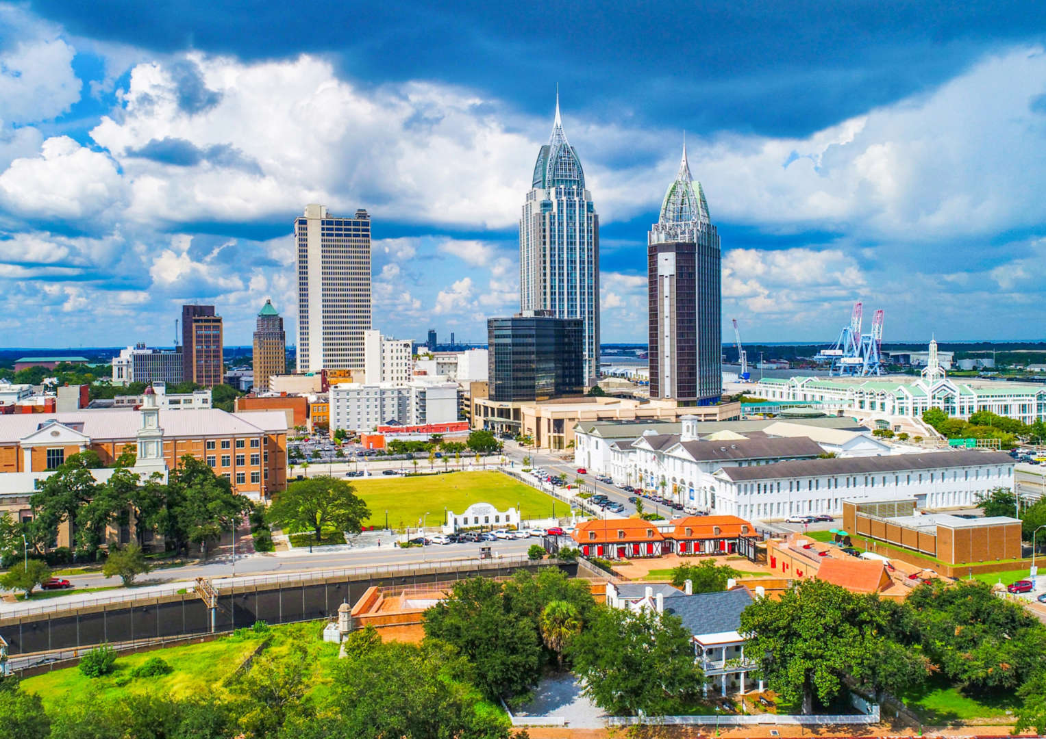 만을 가로질러 북서쪽으로 가면 앨라배마의 유일한 항구인 모빌이 있다.