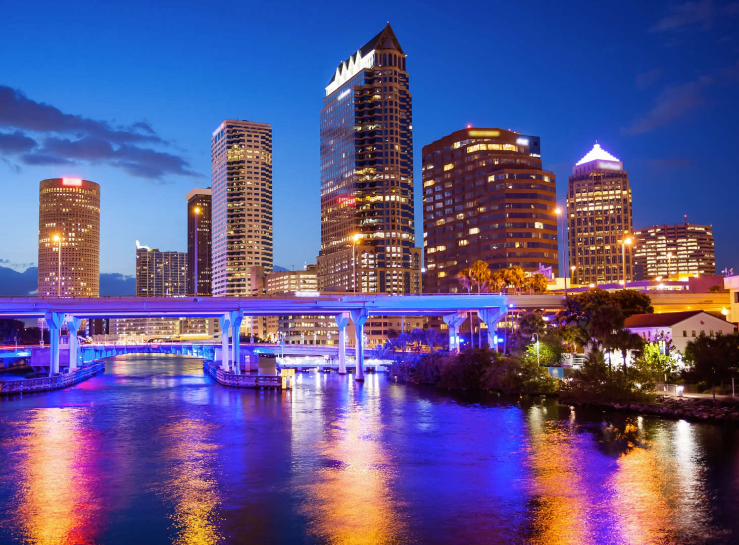 더 북쪽으로 가면, 탬파는 잭슨빌과 마이애미 다음으로