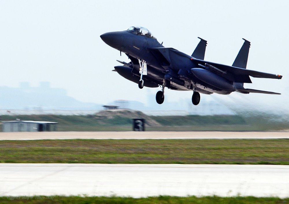 한국 공군 F-15K 전투기가 방공식별구역에서