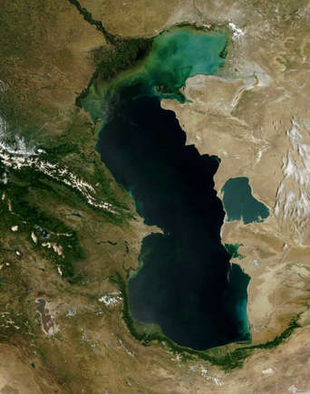 가장 큰 호수로 묘사됨)는 카스피해이다.