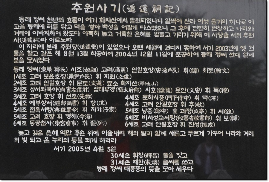 사찰에 묘셔있는 동래정씨 시조 위패