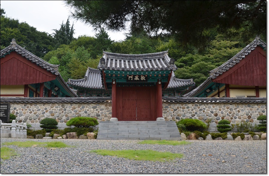 현경문으로부터 약 300m 향림을 지나면 동래정씨 시조 위패를 모시는 경모문이 보인다.