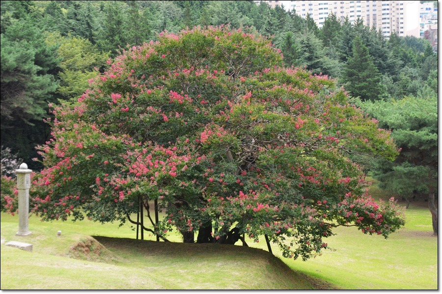 그 묘소 앞 좌우에 우리나라에서 가장 오래된 배롱나무 2그루를 볼 수 있다.