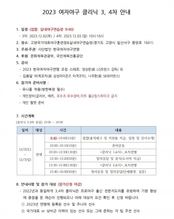 2023 여자야구 3~4차 클리닉 안내(수정) 작성자No.11 김보미|작성시간23.12.28|조회수16 목록 댓글 0 글자크기 작게가 글자크기 크게가 다음검색 현재 게시글 추가 기능 열기 북마크 신고 센터로 신고 댓글 댓글 0 댓글쓰기 답글쓰기 댓글 리스트