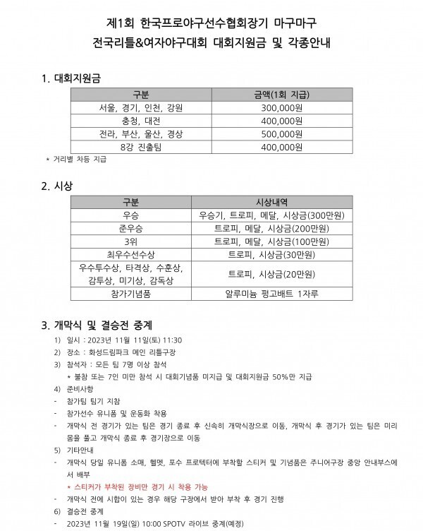 제1회 한국프로야구선수협회장기 - 지원금, 규정 및 각종안내 작성자No.11 김보미|작성시간23.12.28|조회수44 목록 댓글 0 글자크기 작게가 글자크기 크게가 다음검색 현재 게시글 추가 기능 열기 북마크 신고 센터로 신고 댓글 댓글 0 댓글쓰기 답글쓰기 댓글 리스트