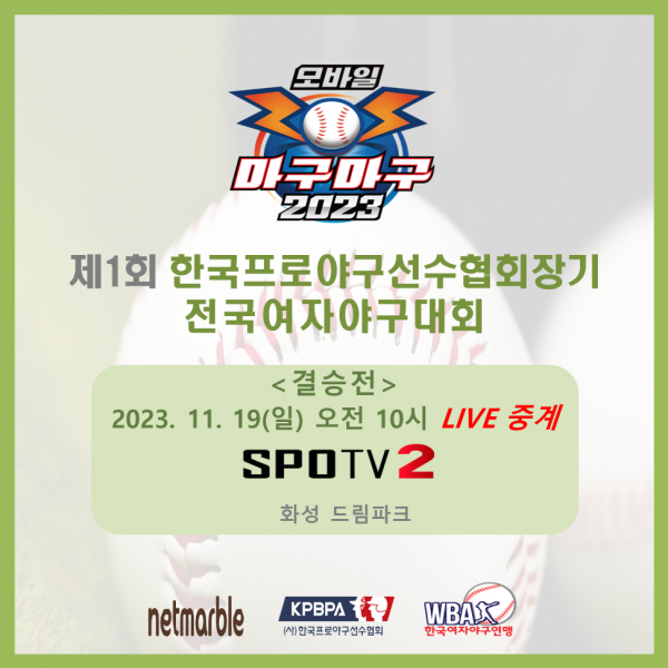 ★ 제1회 프로야구선수협회장기 마구마구 전국여자야구대회 결승전 LIVE 중계