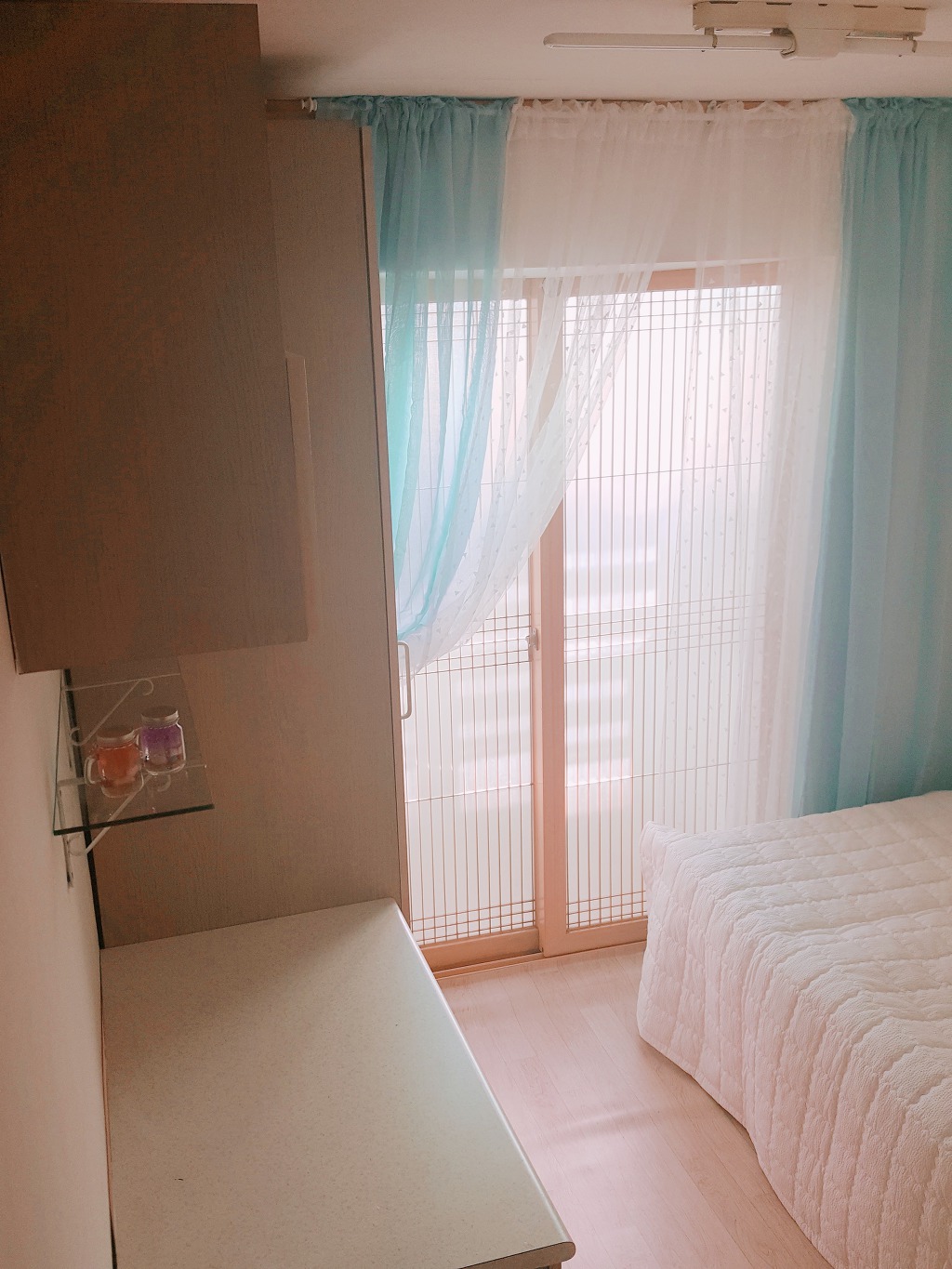 1인실에 화장실과 햇볕 잘드는 베란다가 있어 환하고 조용한 집이랍니다.