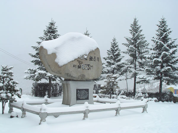 [하늘도 세평, 꽃밭도 세평... 승부역 둘러보기] -시 속의 풍경 같은 소박한 간이역 -영동선을 따라 산속 길 절경감상 -국밥, 빈대떡, 숯불돼지고기구이, 봉화특산물장 -승부 눈꽃 얼음 조각, 추억의 썰매 타기 ※ 첩첩 두메산골입니다.열차가 승부역에 정차하면 동네주민들이 요기하실 것을 팔지만