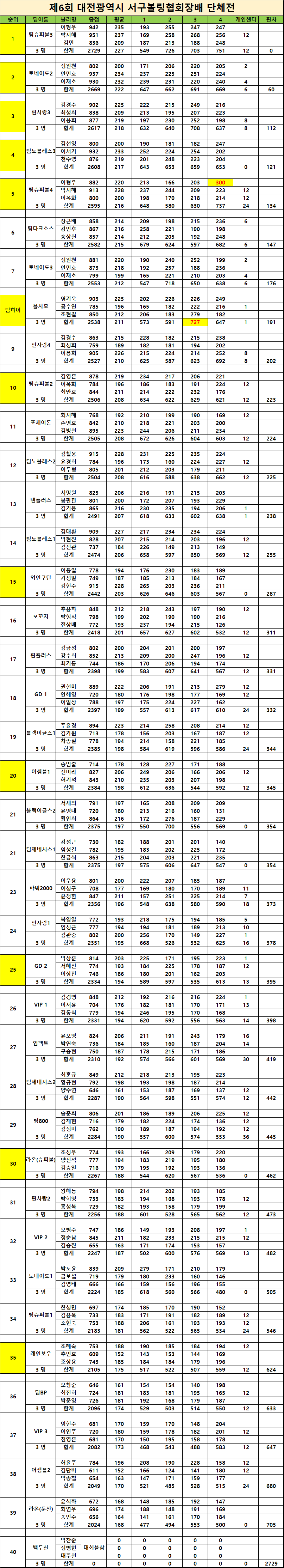 - 순위(노란색)에 해당하시는 클럽은 (순위/클럽명/연락처/계좌번호/예금주) 남겨주시기 바랍니다.