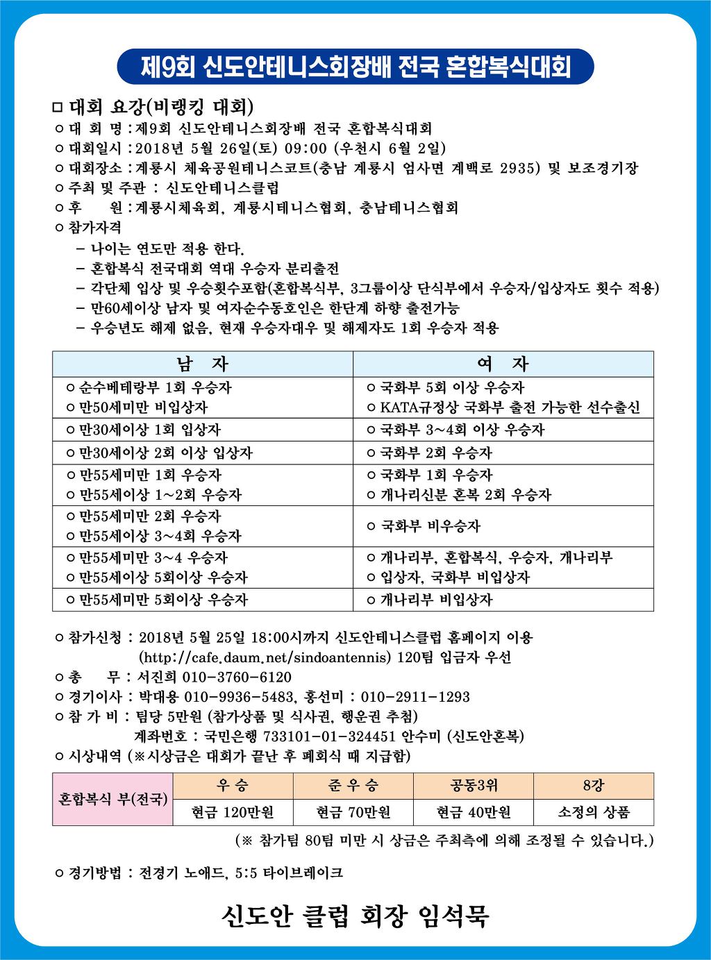 제9회 신도안회장배 전국동호인 혼복대회 요강입니다 작성자산푸름|작성시간18.04.08|조회수45 목록 댓글 0 글자크기 작게가 글자크기 크게가 다음검색 현재 게시글 추가 기능 열기 북마크 공유하기 신고 센터로 신고 댓글 댓글 0 댓글쓰기 답글쓰기 댓글 리스트