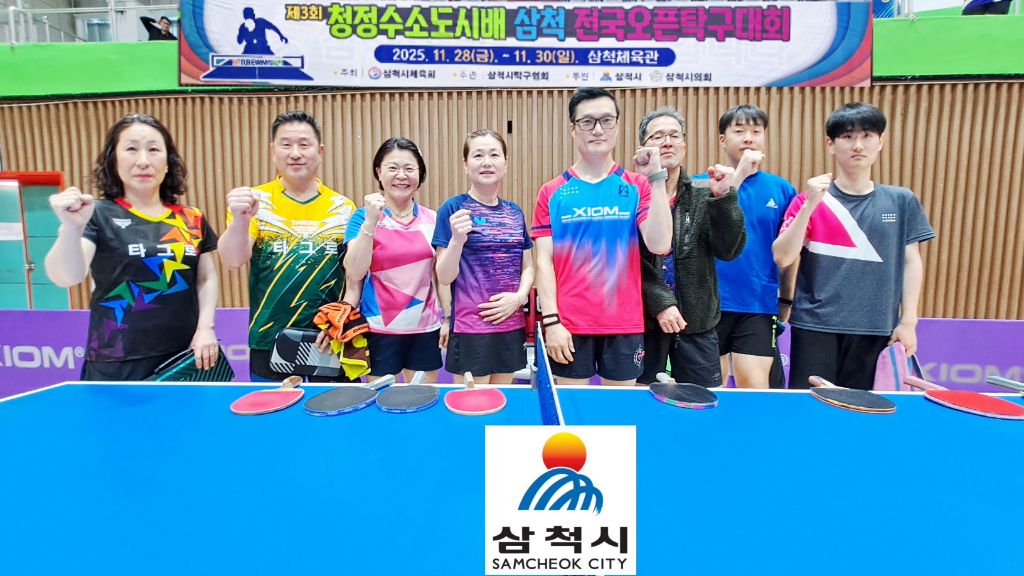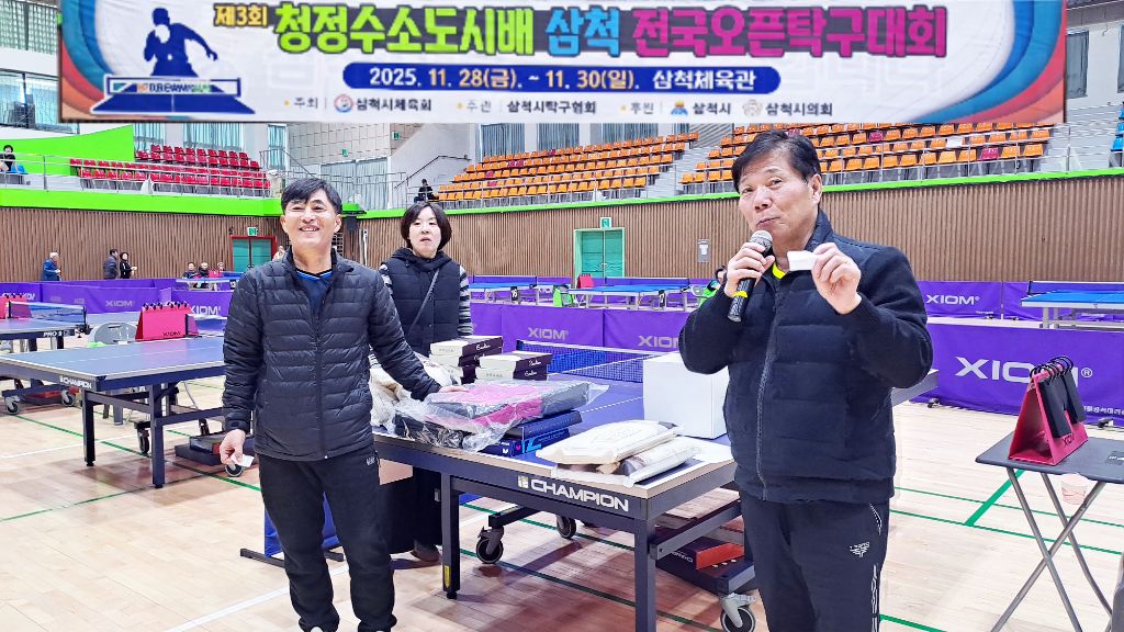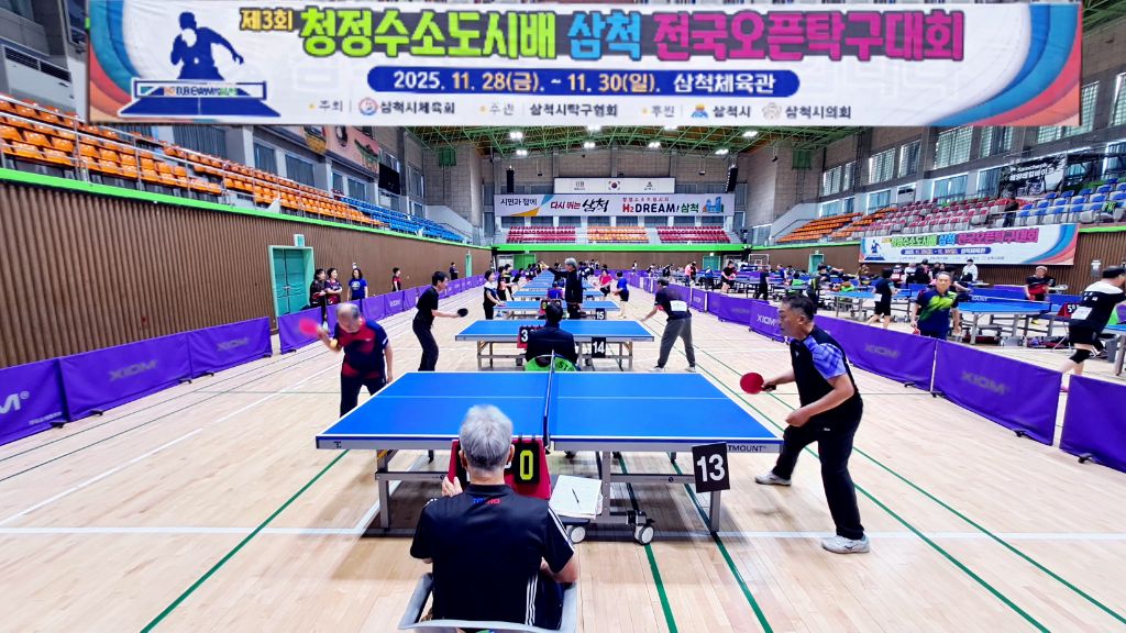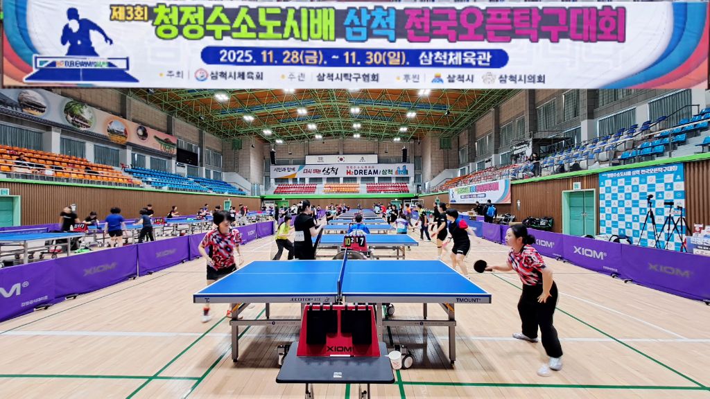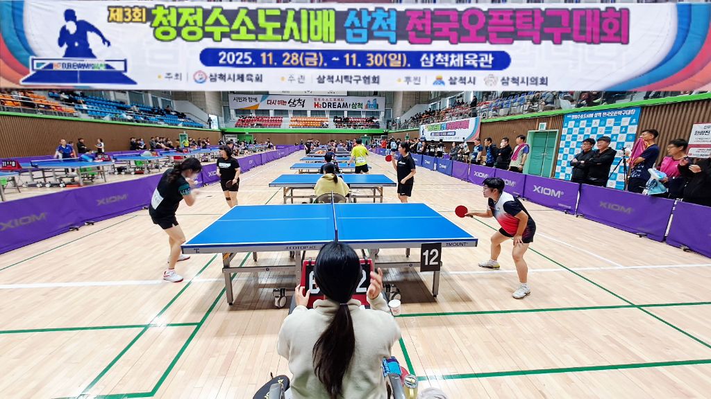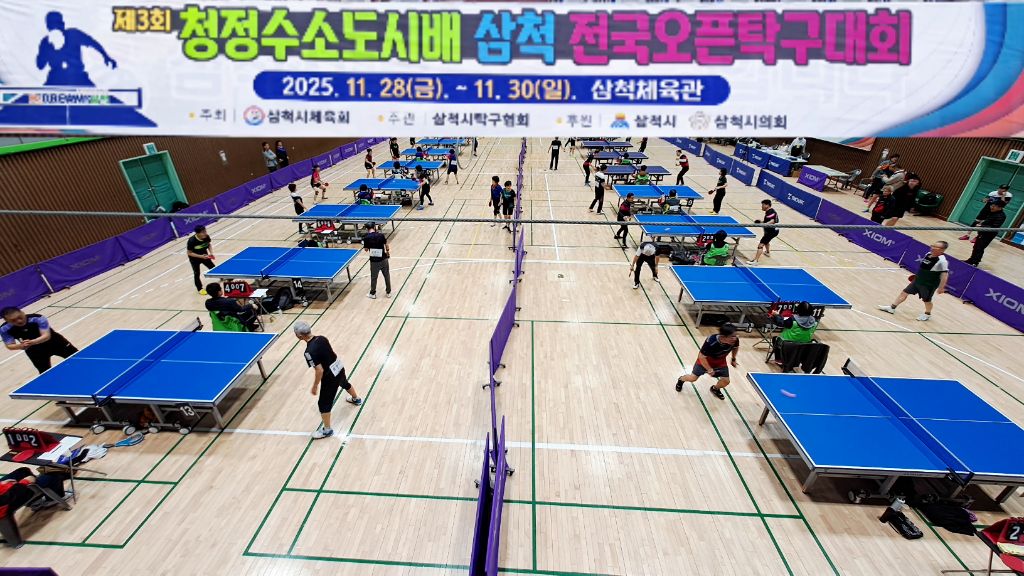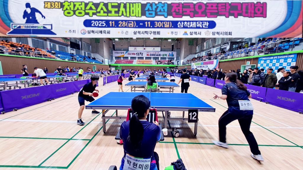 작성자한광진(대한탁구헙회 미디어홍보)작성시간25.12.02조회수30 목록 댓글 0지난 11월28일부터 이곳 삼척시에서는 제3회를 맞이하여 대한민국 최고의 친환경 거점도시로서 청정수소도시배 전국 오픈탁구대회 축제의 장이 개최되었습니다.