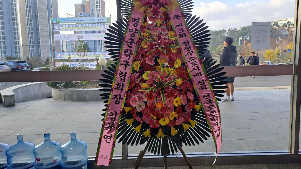 △ 축화 화환 : 경북 영양군탁구협회 김무연 회장