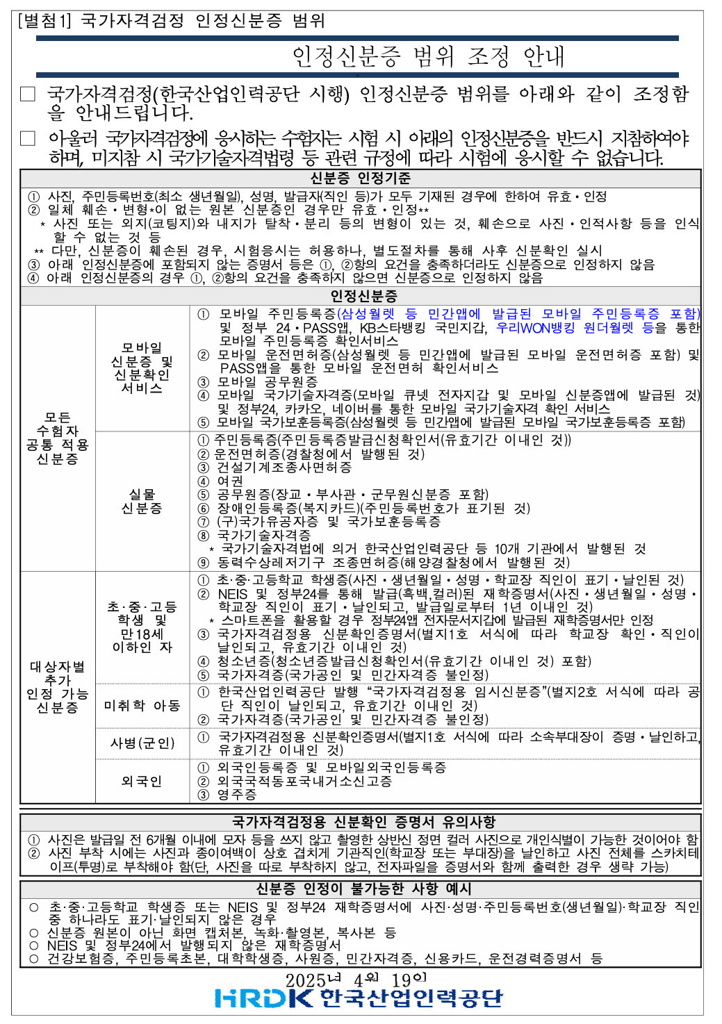 수검자 신분증인정범위 2025. 04. 19부터적용 작성자조교|작성시간25.05.03|조회수33 목록 댓글 0 글자크기 작게가 글자크기 크게가 다음검색 현재 게시글 추가 기능 열기 북마크 공유하기 신고 센터로 신고 댓글 댓글 0 댓글쓰기 답글쓰기 댓글 리스트