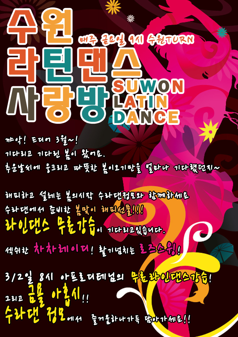수원라틴댄스사랑방 3월 2일(금) 정모공지 작성자할리(+12.16)|작성시간12.03.01|조회수76 목록 댓글 0 글자크기 작게가 글자크기 크게가 다음검색 현재 게시글 추가 기능 열기 북마크 공유하기 신고 센터로 신고 댓글 댓글 0 댓글쓰기 답글쓰기 댓글 리스트