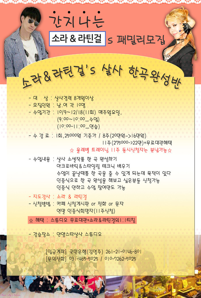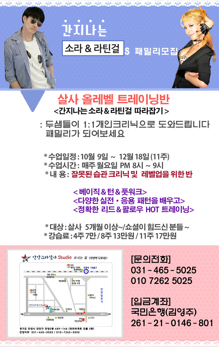 《안양스타살사》 소라&라틴걸's 살사패밀리 모집!ㅡ10/9개강! 작성자(안양스타살사)|작성시간17.09.30|조회수21 목록 댓글 0 글자크기 작게가 글자크기 크게가 궁금한점은 언제든 문의주세요부재중시 문자ㆍ카톡남겨주시면 연락드리겠습니다^^ 다음검색 현재 게시글 추가 기능 열기 북마크 신고 센터로 신고 댓글 댓글 0 댓글쓰기 답글쓰기 댓글 리스트