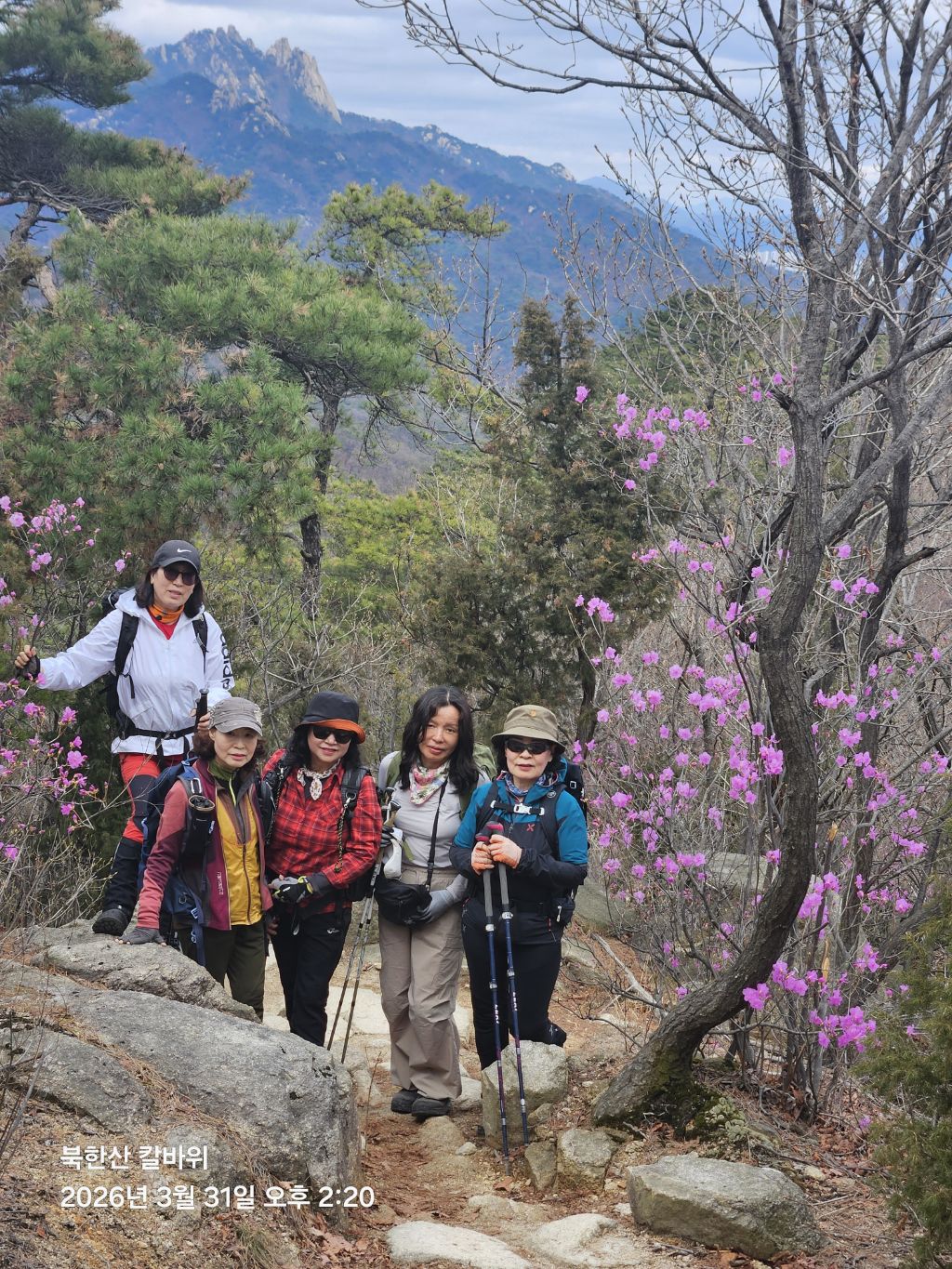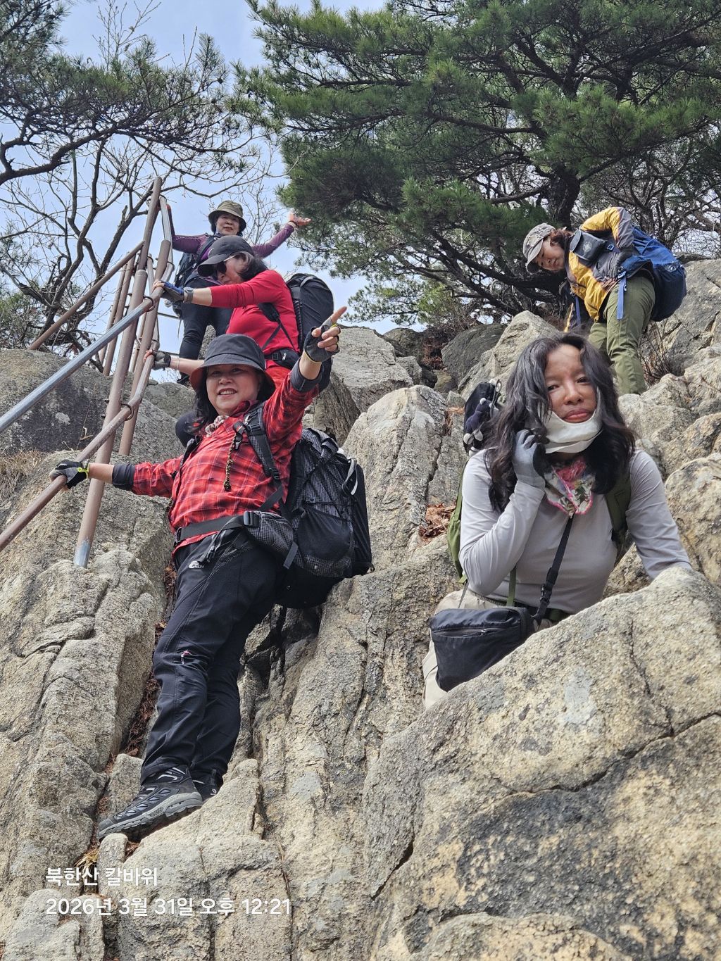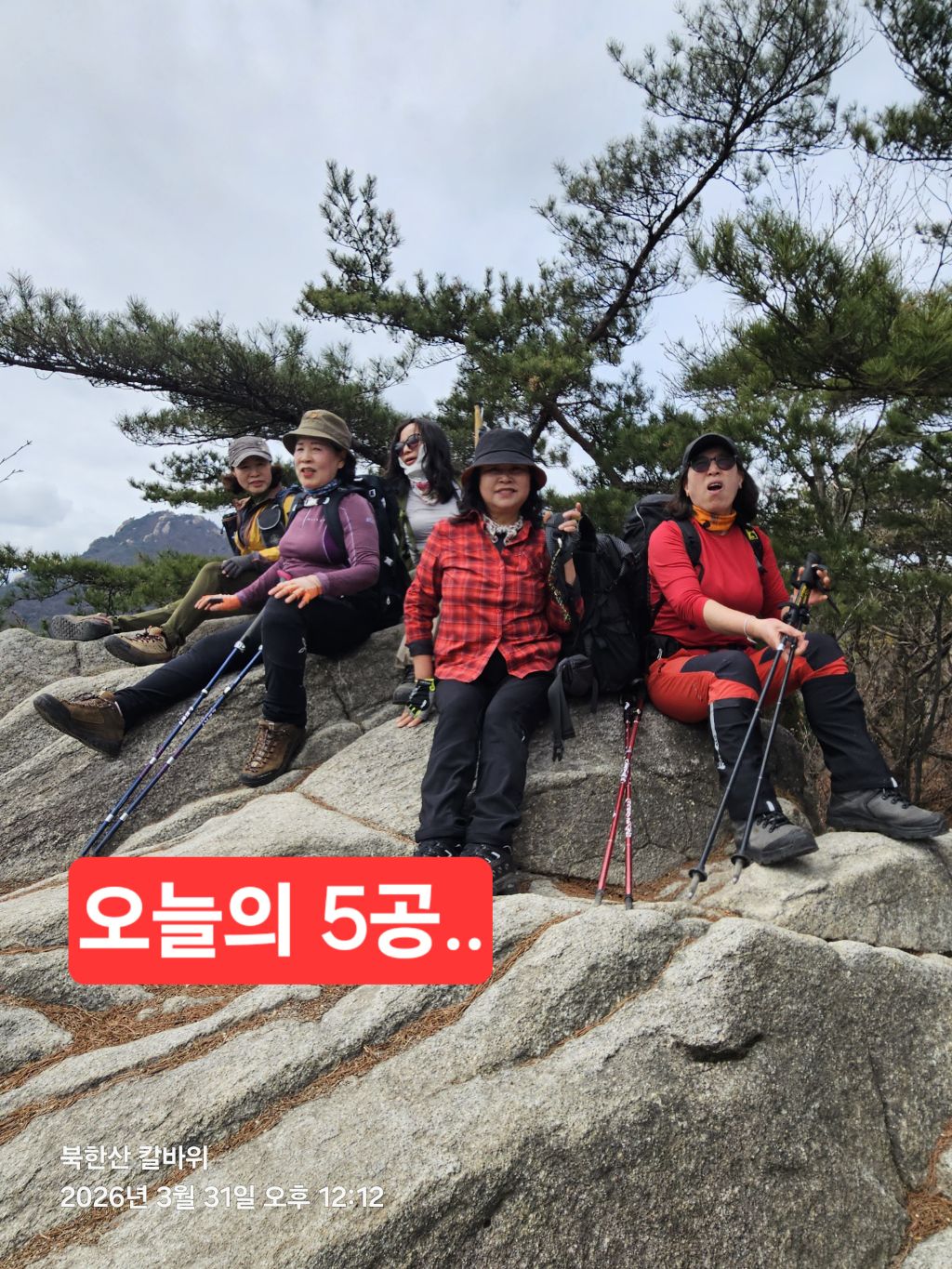 작성자뿌띠 작성시간 26.04.01 작품 은 역시 북학산 웅장한 바위 모델님 5 섯분 공주님들 사이에 왕자님 한분 진인사님 복 받았네요 ㅎ ㅎ