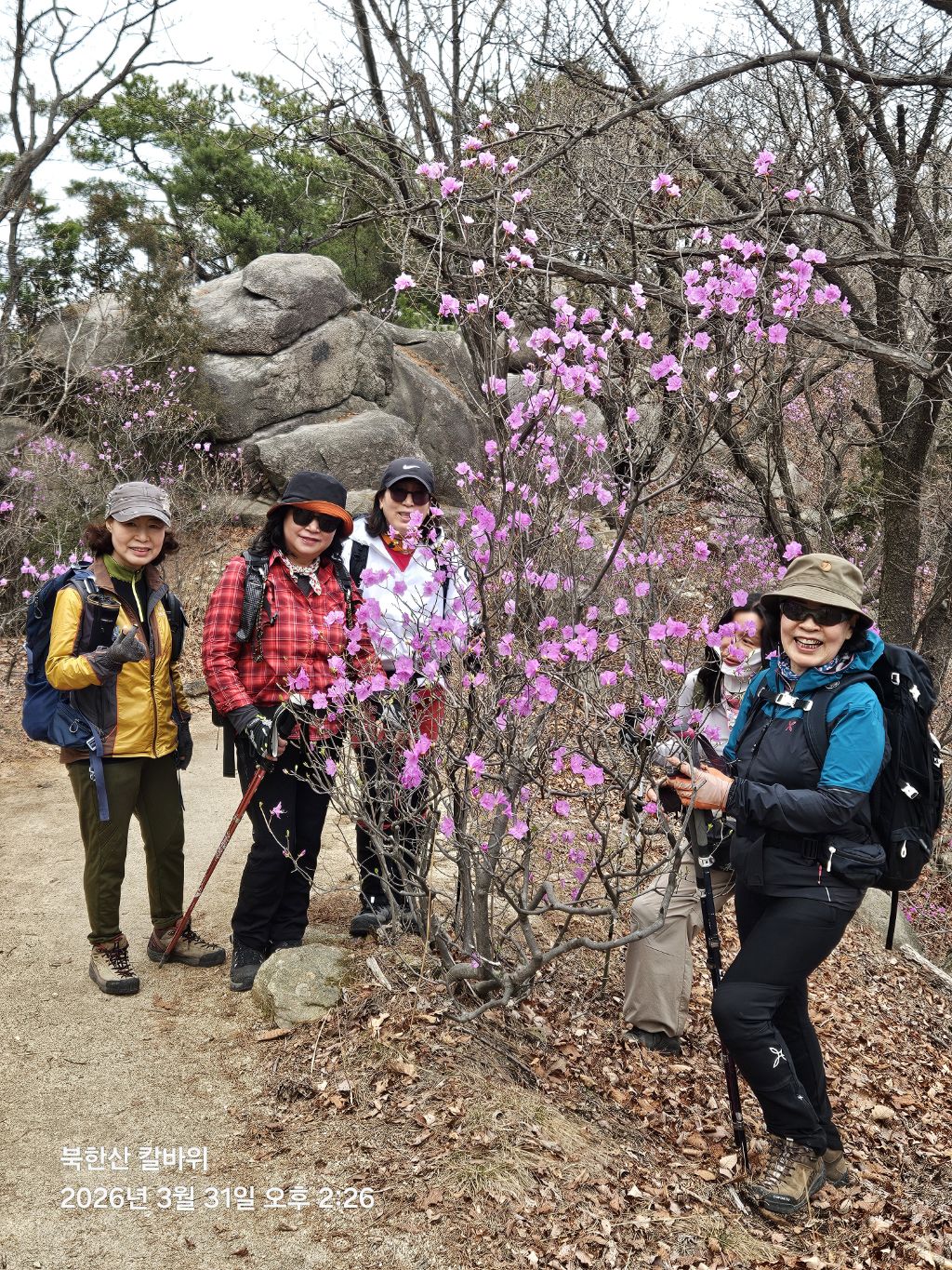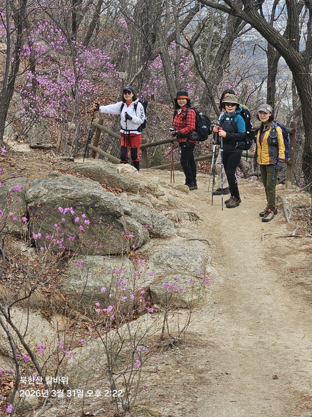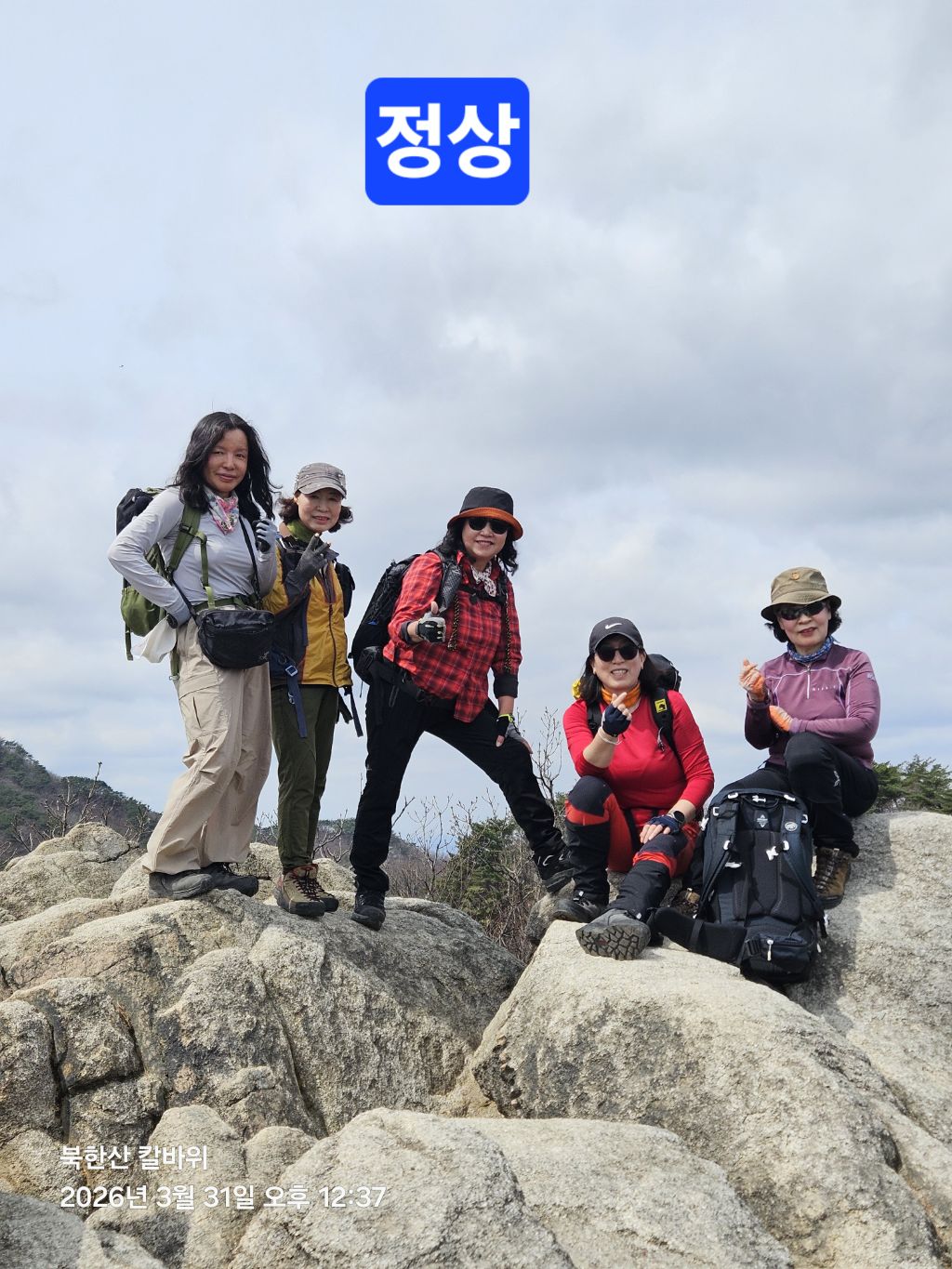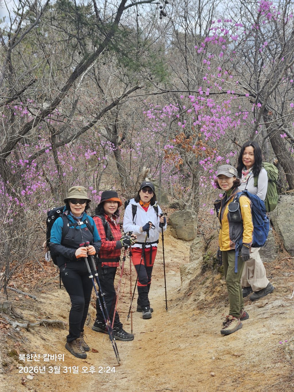 작성자뿌띠 작성시간 26.04.01 작품 은 역시 북학산 웅장한 바위 모델님 5 섯분 공주님들 사이에 왕자님 한분 진인사님 복 받았네요 ㅎ ㅎ
