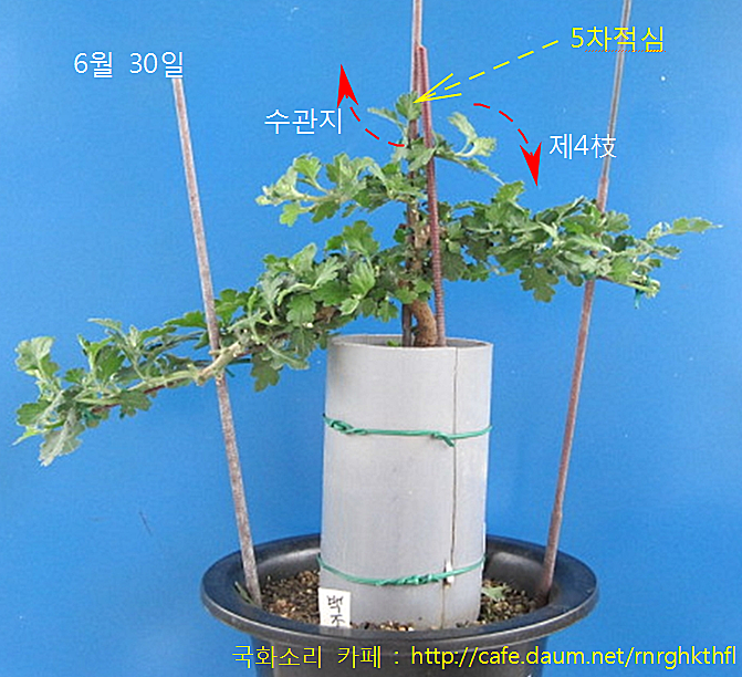 ① 6월 30일, 아래의 사진에서, 같은 방법으로, 제4枝를 우측으로 유인하고,