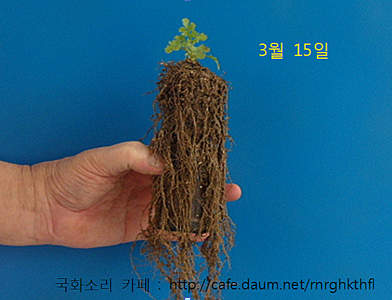 뿌리가 아래로 굵고 길게 힘차게 뻗어 내려갑니다.