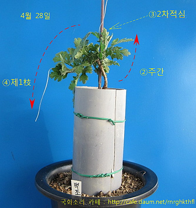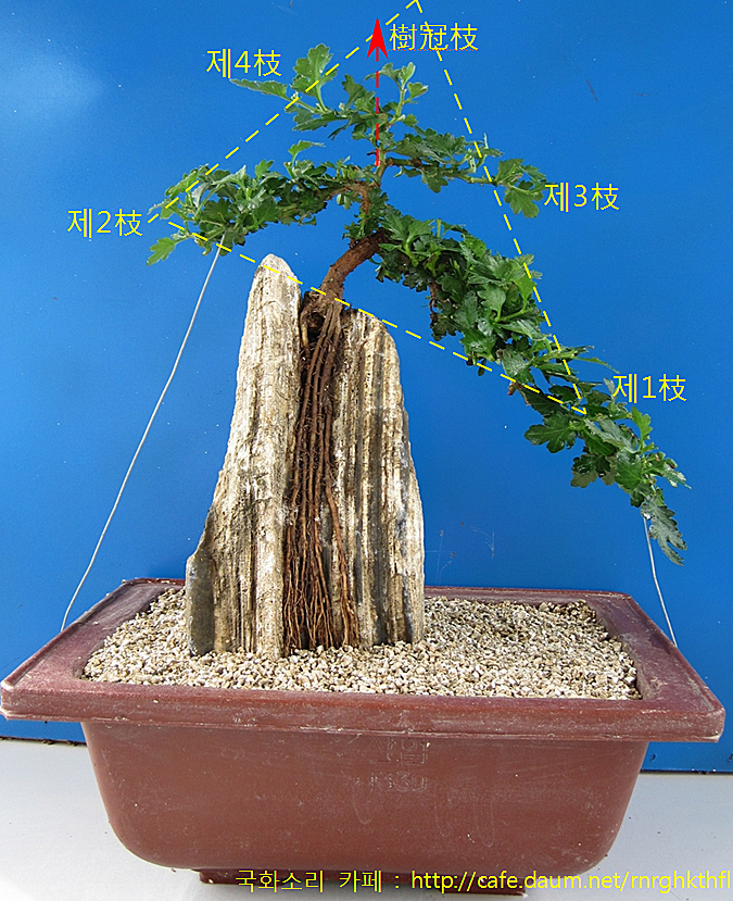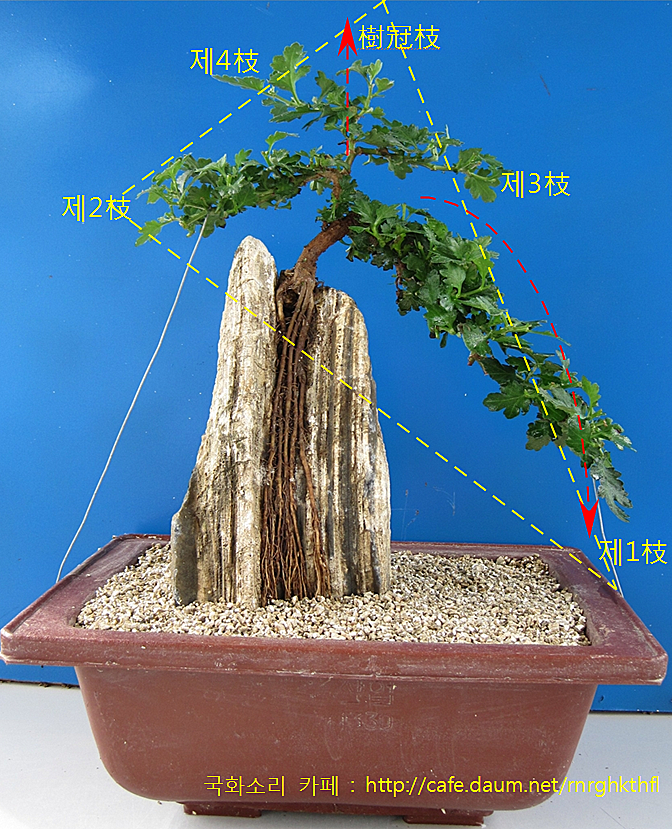 ④ 아래의 사진에서, 제1枝는 조금 더 길러 내리고,