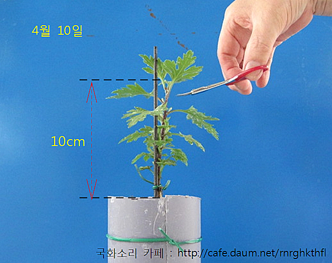 ② 이때, 사진과 같이, 모종의 10cm 정도 높이에서, 1차 순지르기 합니다.