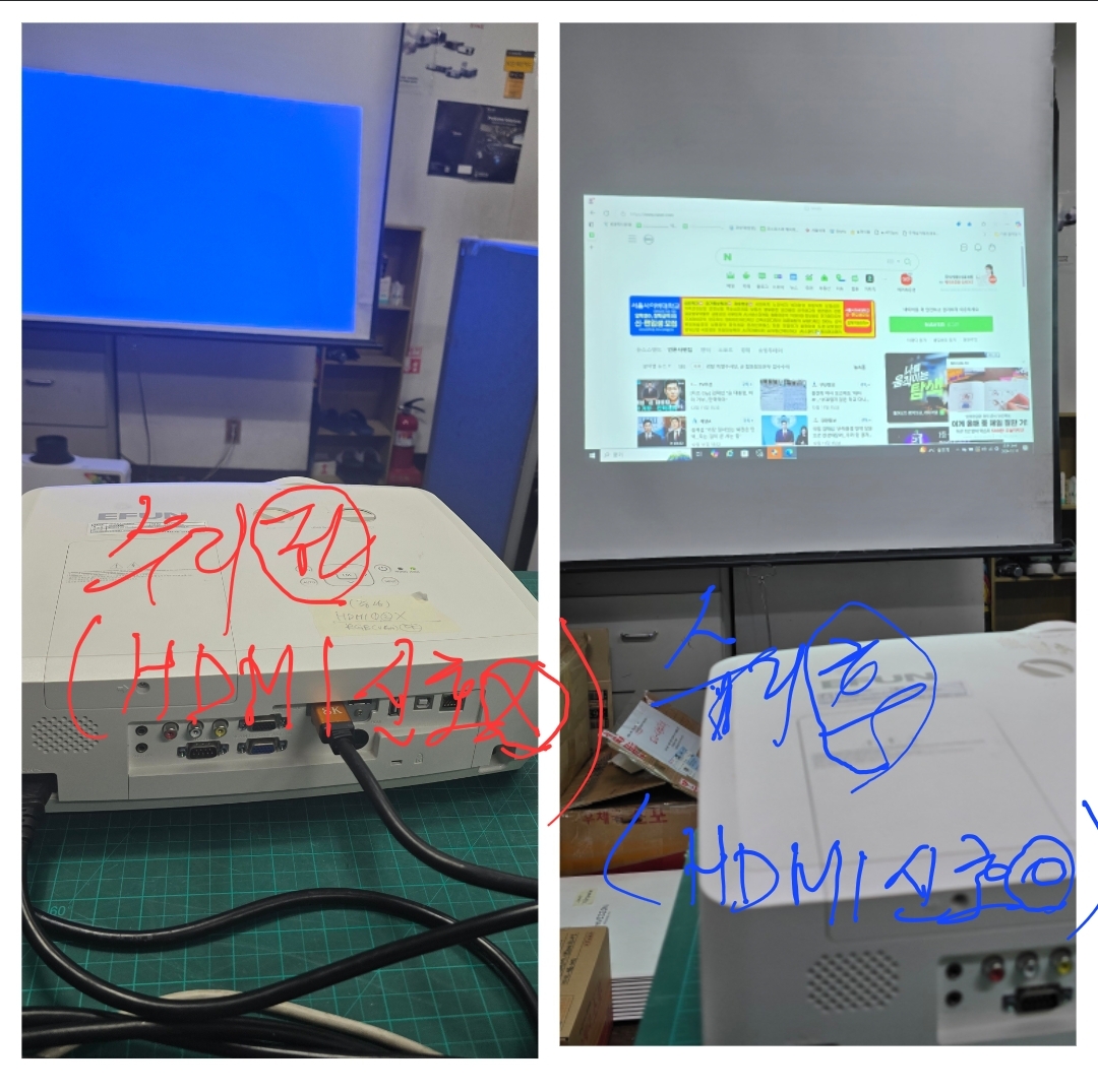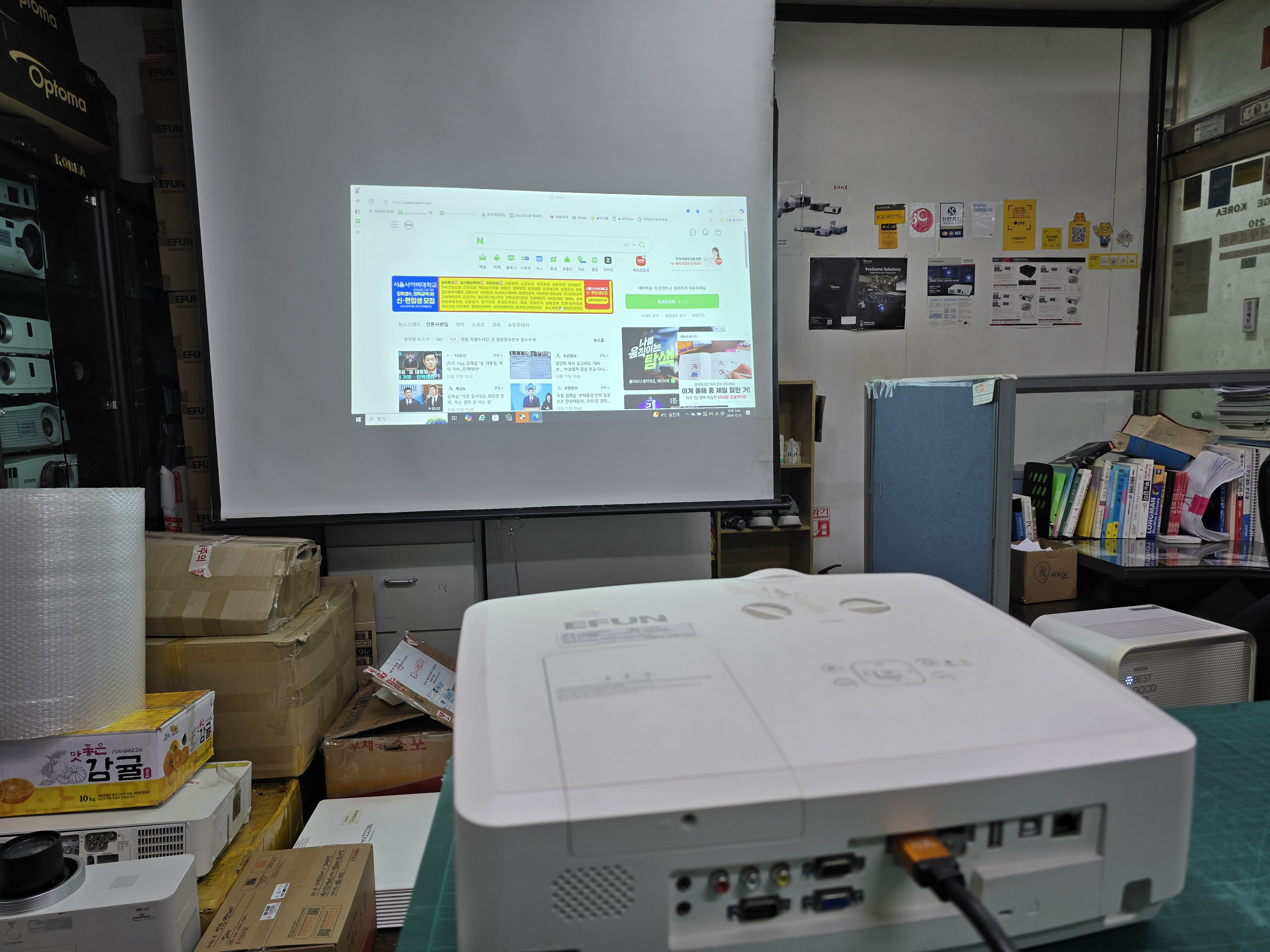 ■ 수리 후 PC 화면이 스크린을 통해서 잘 투사됨