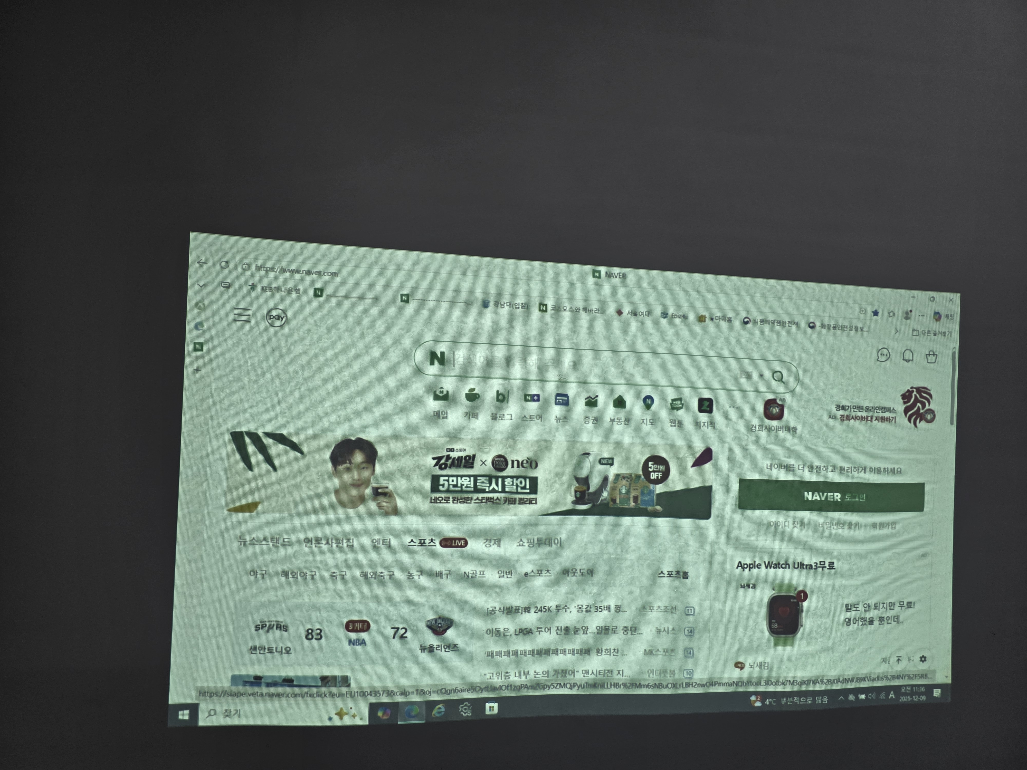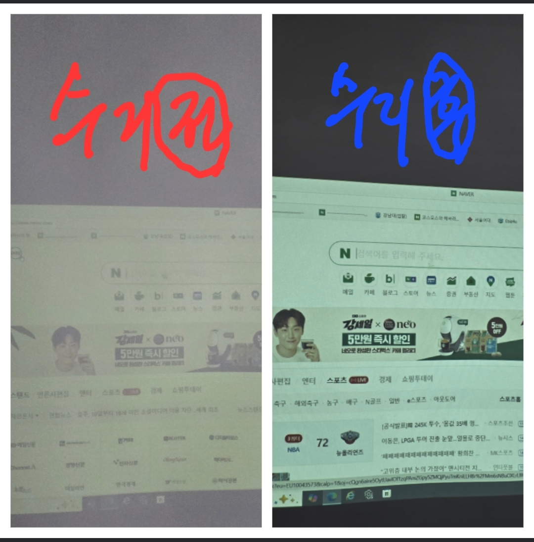 ➥ 형광등 불빛을 끄고 수리전과 후의 화면 비교