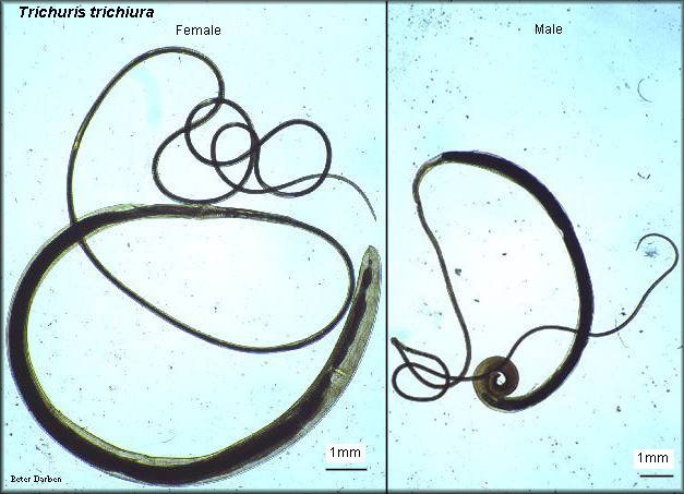 f실 모양으로 아주 작고 눈으로는 식별하기 어렵다. 오염된 흙을 먹어 감염될 수 있으며 혈 변, 빈혈, 허약, 체중 감소 등의 증상을 보인다.