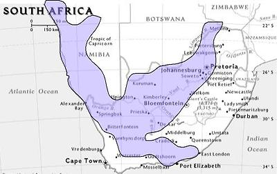 남아프리카와 나미비아를 동.서로 횡단하는 오렌지강 유역에 주로 서식 분포하는데, 이 지역은 연간 강우량이 0 - 500mm 내외의 건조한 지역이지만 , 강에서 증발되는 안개를 수분 섭취의 방법으로 이용할수 있기 때문이다.