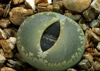 구조는 잎의 윗면을 횡단하는 틈에 의해, 2 장으로 나눠지는 수분이 가득한 잎과 극히 짧은 줄기, 잘 발달된 가늘고 긴 뿌리로 구성되어 있으며, 잎의 표면 창을 통해 들어오는 빛이 뿌리 쪽의 잎 내면의 가장자리에 분포된 엽록체를 통해 광합성을 한다.