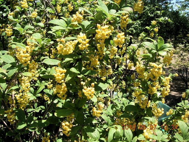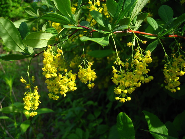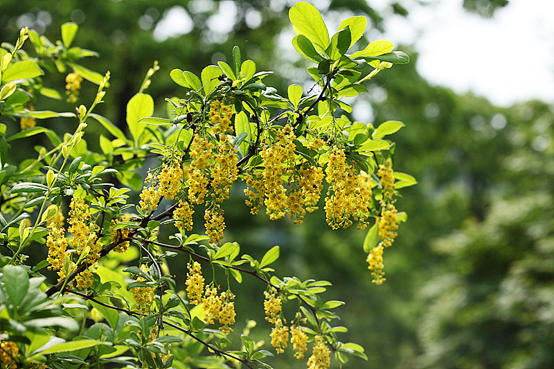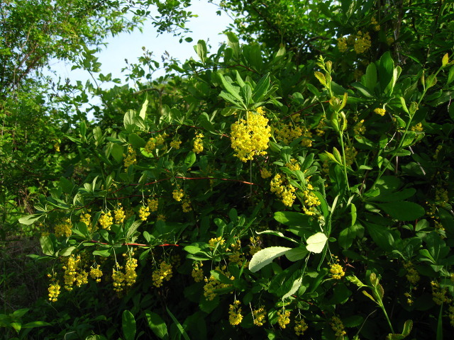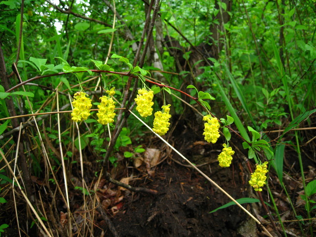 매발톱나무 [Berberis amurensis]:매자나무과(―科Berberidaceae)에 속하는 낙엽관목. 잎은 타원형이며 날카로운 톱니가 있다. 노란꽃이 4~5월에 총상(總狀)꽃차례로 핀다. 열매는 장과(漿果)로 타원형이며 9월에 붉게 익는다. 매자나무 섬매발톱나무: