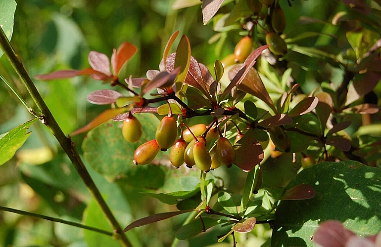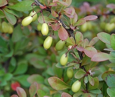 ▶연밥매자나무 (var. ellipsoidea NAK.): 열매가 긴 타원형이다.