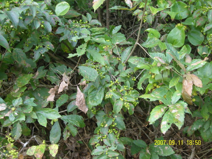 열매의 특징 열매는 장과로 구형 또는 난상 원형이고 지름 6㎜정도이며 광택이 있고 9월에 적색으로 익는다.