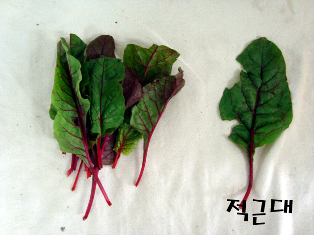 적근대 : 근대인데 잎줄기가 빨간색이예요. 베타카로틴, 칼슘, 철분이 풍부해서 피부미용에 좋대요.