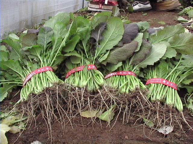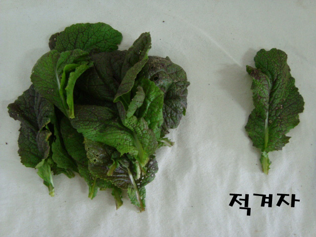 적갓 - 갓김치 담아 먹는 갓인데 매운 맛이 나죠. 쌈으로도 좋아요.