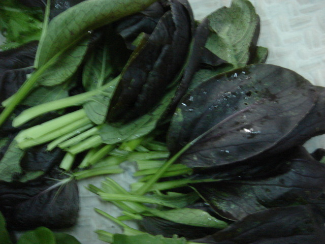 적겨자 : 겨자채씨 달라고 했더니 심어보니까 이런게 나왔습니다. 역시 매운맛이죠. 카로틴, 비타민C, 칼슘이 많이 들어있어서 눈과 귀를 밝게 하고 마음을 안정시키는데 효과가 있다네요
