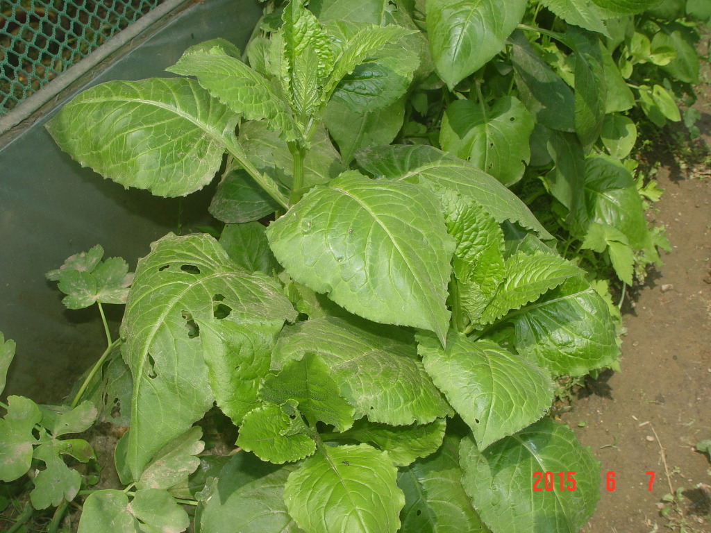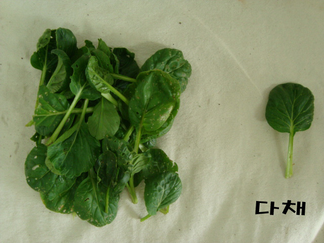 다채 : 담백한 맛으로 비타민이 많아서 비타민채라고도 부릅니다. 달착지근한 맛 때문인지 벌레들이 아주 맛있게 드신 흔적이 보이네요