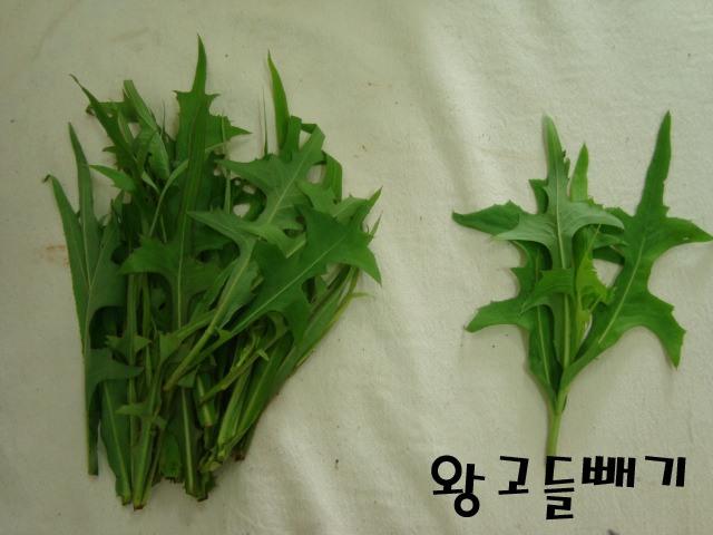 왕고들빼기 : 쇠똥풀이라고도 하는데 여름 들판엔 어디가든 많이 있죠. 잘라낸 자리에 하얀 유액이(금방 붉은 자국으로 변하더라고요) 생기는 걸 보면 몸에 좋은 것이 틀림없어요. 위궤양이나 만성위병에 효험이 있대요