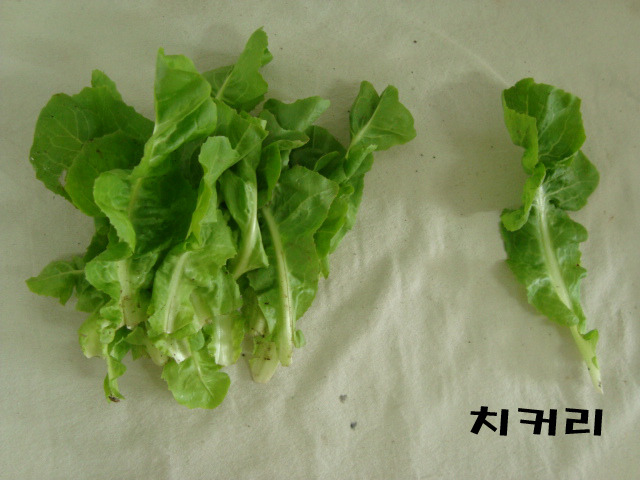 치커리 : 씨앗봉지에 "모듬치커리"라고 된 것에서 나왔어요. 엄청 쓴맛이죠. 하지만 치커리 종류는 모두 카로틴과 철분이 많고 체질개선, 시력회복, 피부미용에 좋다고 해요. 입에 쓴것이 몸에 좋다는 말도 있잖아요.