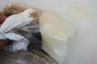키친타올이나 면행주. 베보자기를 이용하면 오징어 껍질을 쉽게 벗겨낼 수 있습니다.