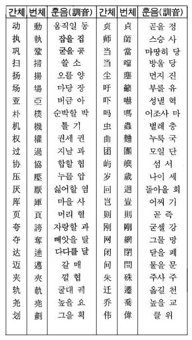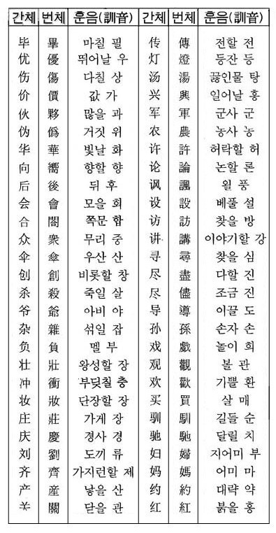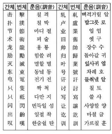 한자를 간략화 하였다.