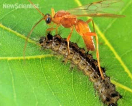 유충 이외에도 일부 말벌의 유충이 나비 애벌레의 몸 속에 있다는 것으로 보아
