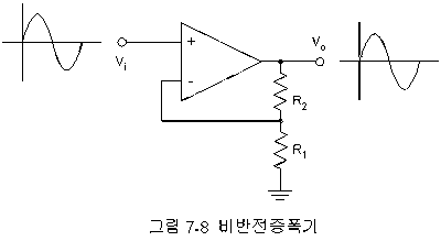 그림 7-8에 나타낸 것과 같이 OP-Amp를 비반전증폭기로 구성할 수가 있다. 이것은 입력신호가 비반전(+) 입력단자에 가해지기 때문이다.