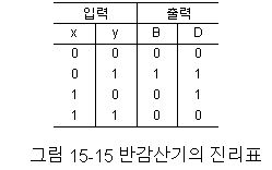 반감산기 두 출력에 대한 부울 함수들은 진리표에서 직접 구할 수 있다.