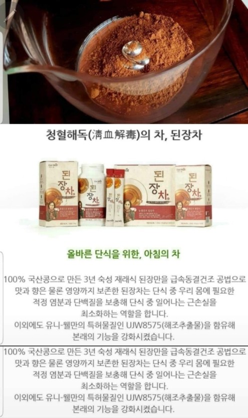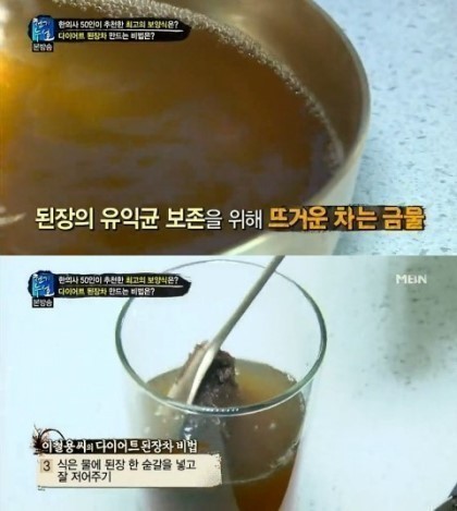 된장차의 놀라운 비밀ㅡ 국이나 찌개로 많이 섭취를 하는데ㅡ 생된장을 물에 섞어 마시거나ㅡ 건강 재료와 함께 넣고 ㅡ갈아 마시는 것을